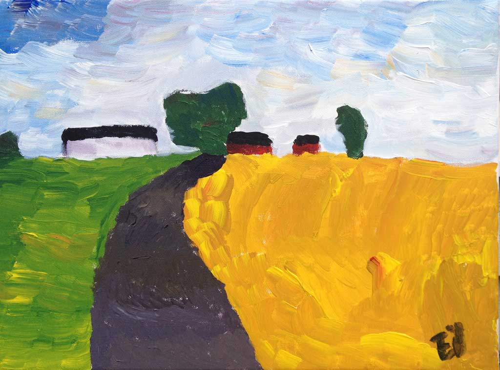 Halländskt åkerlandskap, 2014, akryl, 55x38, vinst i Konstrundans lotteri